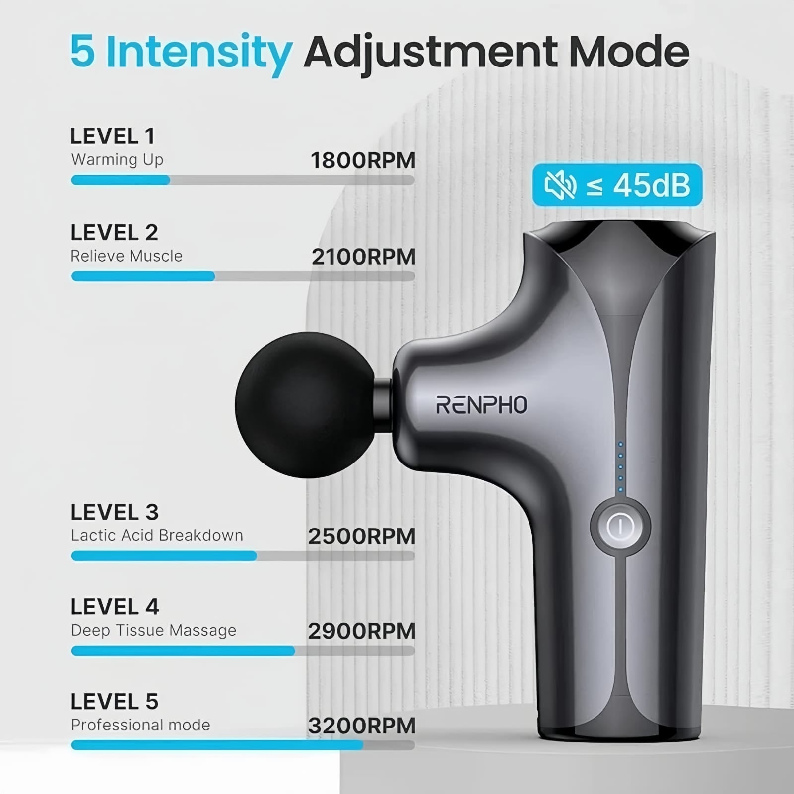 ⚙️ 6 Adjustable Vibration Modes – With speeds up to 3600 RPM, target different muscle groups and adjust intensity as needed.