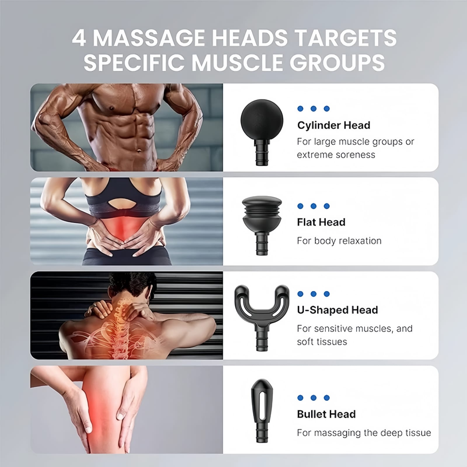 💪 4 Replaceable Massage Heads – Customize your massage for the neck, back, shoulders, arms, legs, and more.